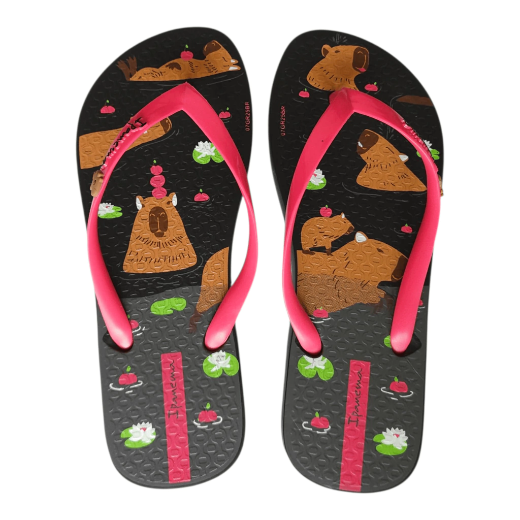 Descubra o chinelo moderno que é a cara do Brasil! O IPANEMA CHINELO REF HYPE PRETO traz uma stampa de capivara super em alta, perfeita para quem quer unir estilo e personalidade em um só calçado.