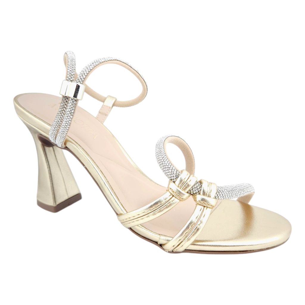 A sandália MARIOTTA é pensada para a mulher moderna que não abre mão do estilo nem do bem-estar. Seu salto taça dourado é um diferencial que valoriza a silhueta, enquanto os detalhes em strass conferem um toque de glamour sutil.