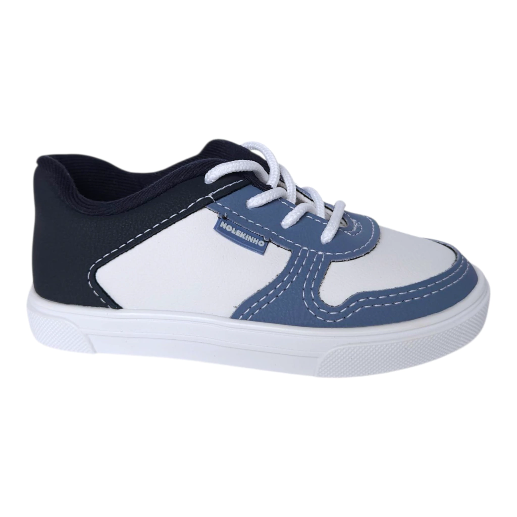 O Molekinho Tênis Ref 2133.176 é a escolha perfeita para quem busca um calçado estiloso e moderno, sem abrir mão da praticidade e do conforto. Com uma combinação elegante nas cores branco e azul, este tênis social apresenta um design único que se adapta tanto ao ambiente de trabalho quanto a ocasiões casuais.