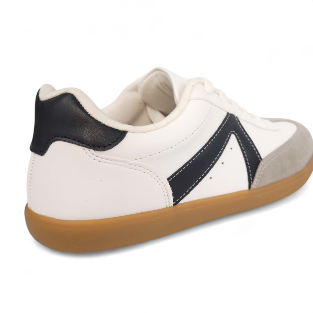 Seu solado em PVC antiderrapante proporciona segurança em cada passo, enquanto os detalhes em preto criam um contraste elegante e moderno. Com um salto de 2 cm, este tênis é perfeito tanto para o dia a dia quanto para ocasiões mais formais.